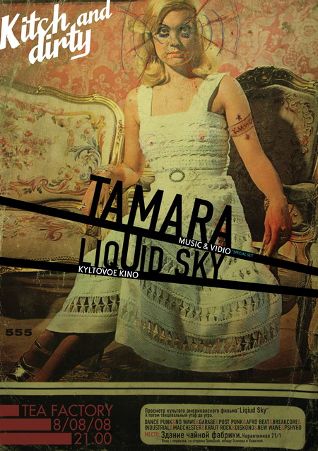 Liquid Sky — культовый американский авангардный фильм, впитавший в себя всю клубную эстетику начала 80-х, музыку в жанре new wave (или, может, то был synth-pop, а может, пост-панк?), экспрессионизм, переходящий в поп-арт, а оттуда в застарелый брайтонбичевский соц-арт, тотальную распущенность нравов, вуайеризм, героиновую зависимость, захлестнувшую подвалы, студии и пентхаусы Нью-Йорка, извращения модельного бизнеса... и космических пришельцев, а также уфологов — неотъемлимый атрибут угарных 70-80-х годов. В результате перегонки этих компонентов получился натуральный, дистиллированный трэш, насладиться которым смогут все пришедшие в этот вечер.