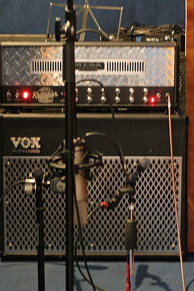 Мы практикуем как цифровое сведение (в DAW или на нашей цифровой консоли), так и цифро-аналоговое сведение - когда часть обработки осуществляется внешними аналоговыми приборами. Часть нашего оборудования ламповое - полностью ламповый гитарный усилитель Mesa Boogie Triple Rectifier, микрофон Rode K2, custom гитарный усилитель, предусилитель ART Tube MP, комбо VOX AD100VT имеет гибридную лампово-транзисторную схемотехнику (один двойной триод 12AX7 в выходном каскаде усилителя). Благодаря наличию двух кабинетов у нас можно прописывать стерео гитарный звук за один дубль, что существенно сокращает расходы на запись.
