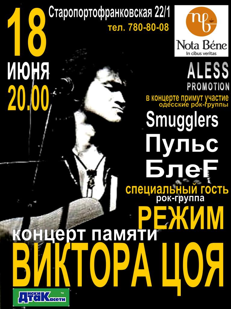 Впервые в Одессе 18 июня в 20.00 в клубе NOTA BENE концерт памяти легенды русского рока Виктора ЦОЯ.