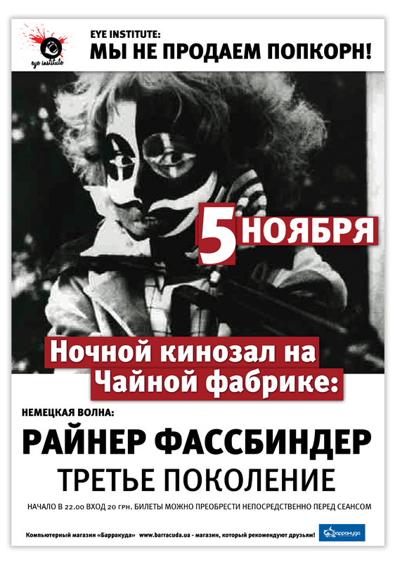 В пятницу, 5 ноября, в уютном кинозале на Чайной Фабрике пройдет кинопоказ одного из самых неординарных режиссеров современности - Райнера Фасбиндера.