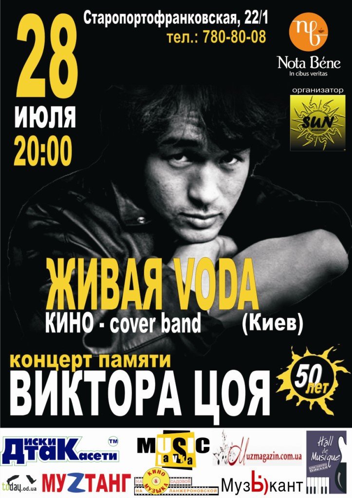 28 июля 2012 года в 20:00 в арт-кафе NOTA BENE (ул. Старопортофранковская, 22/1) пройдет 3-й ежегодный концерт памяти Виктора Цоя в Одессе.