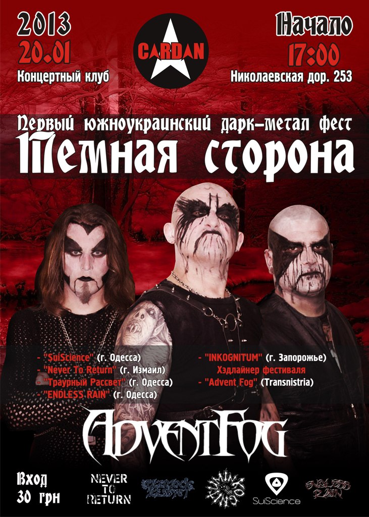 (http://vk.com/dark_metal_fest), который состоится 20 января 2013 г. в CARDAN CONCERT CLUB (http://vk.com/cardan_concert) г. Одесса, Николаевская дор. 253