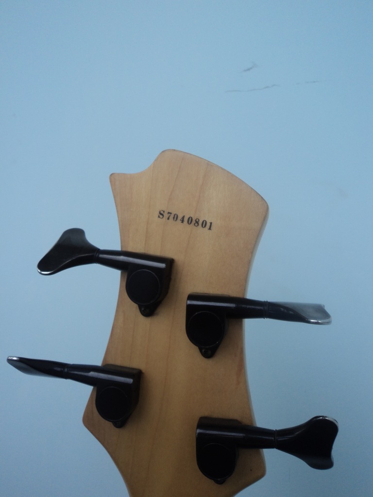 Новых фото у меня нет. Сейчас на ней стоит чёрный хамбакер и два чёрных сингла. Хамбакер - ESP пассивный. Синглы - один нонэйм, а второй Ibanez inf-3. На ручке тона стоит отсечка на хамбакер. На пикгарде есть полу затёртый автограф Сергея Табачникова. Колки - Gotoh. На дэке большой скол, не очень аккуратно заделанный акрилом.