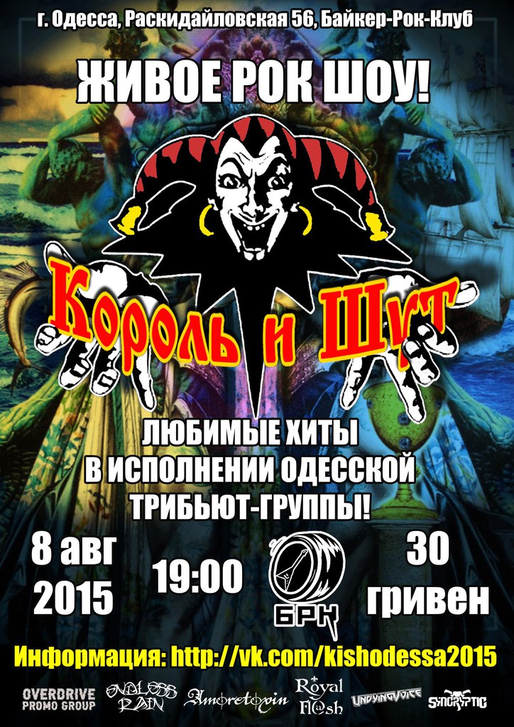 В программе более 20 лучших хитов группы "Король и Шут", для вас выступит специальный состав КиШ tribute band:
