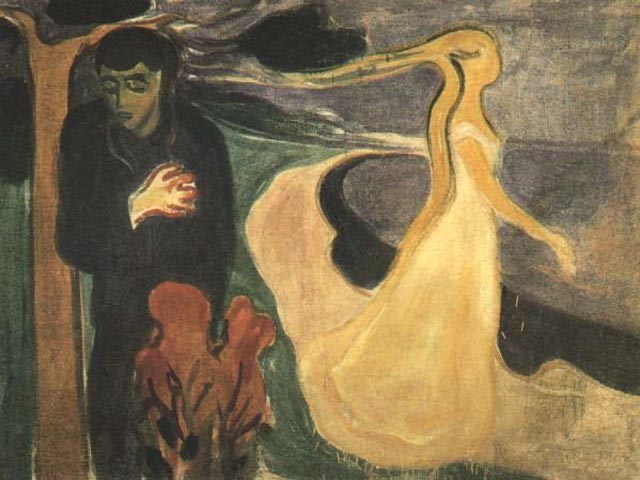 Наверное, это озеро.  <br />Тёмное и усталое.<br />Наверное, это ветер.<br />Гладит медовые волосы.<br />А мне бы…а мне бы шторм. <br />С его двенадцатью баллами.<br />Чтоб не видать ни зги. <br />Чтобы не слышать голоса<br /><br />Шёлковых белых птиц, <br />В платье твоём упрятанных.<br />Шёлковых мёртвых птиц,<br />Рвущихся в небо синее.<br />Дева, ступай домой. <br />Светлою, незапятнанной.<br />Дай мне свободу! Дай… <br />Тихо стоять под ливнями.<br /><br />Разрыв одного сердца. Стоп! Снято!