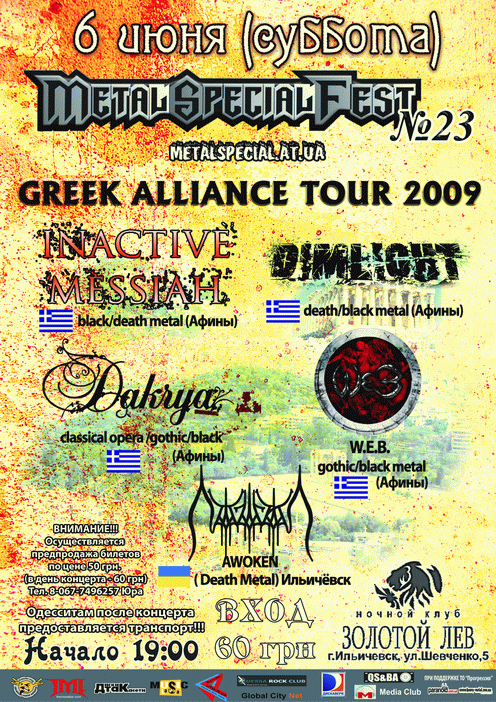 По вине тур-менеджера в название одной из греческих групп закралась ошибочка...правильное название Dimlight. Играют музычку чем-то схожую с группой CoF. Офф. сайт группы - http://www.myspace.com/dimlightband