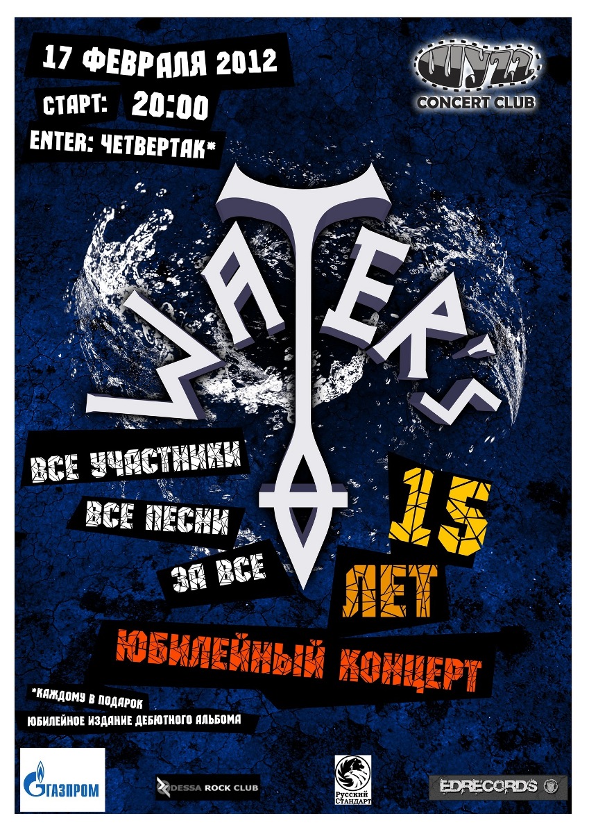 Мы, группа WATER'S, рады пригласить вас 17-ого февраля 2012 года в клуб ШУZZ на празднование нашего 15-тилетия!!!