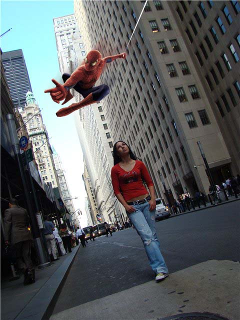 На третьей фотке не хватает летящего сзади Спайдер мэна =))