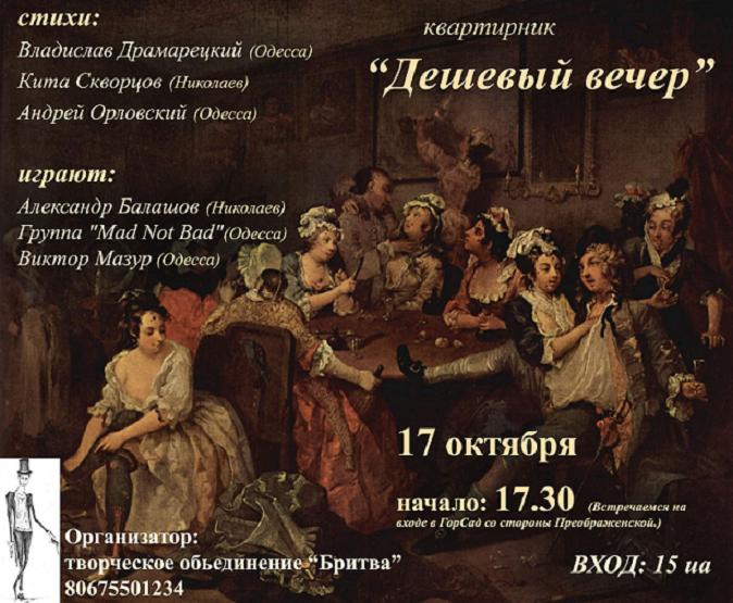 Квартирник "Дешевый Вечер" - 17 октября.