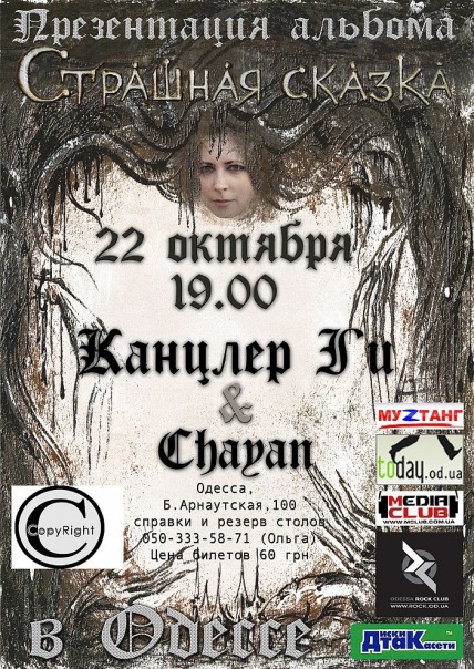 Приглашаем вас на концерт- презентацию альбома Канцлера Ги "Страшная сказка" в Одессе, 22 октября в клубе "Копирайт"!