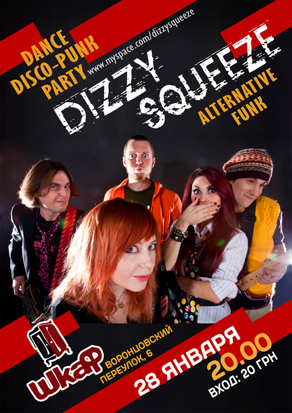 28 января! D I З З Y __ S Q U Е Е Z Е & ShkaFunk - ШКАФ, 20-00. Disco-punk, alternative rock, funk