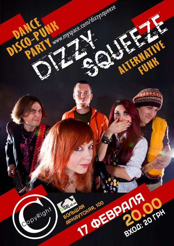 17 ФЕВРАЛЯ! D I З З Y __ S Q U Е Е Z Е - Копирайт, 20-00. Disco-punk, alternative rock