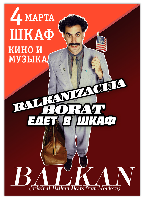4 МАРТА - БАЛКАНИЗАЦИЯ в клубе ШКАФ: кинопоказ + вечеринка. БОРАТ ЕДЕТ В ШКАФ