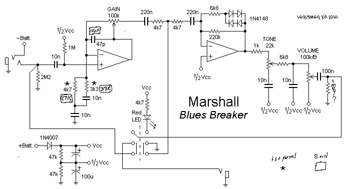 Music Man ты не заморачивайся. Собери одноканальный усилок. Лучше по древним схемам. Стараться просто компоненты покачественнее собрать. Попробывать полевики или военные (авиационные лампы) , транс поувесистей. Если есть сложности с изготовлением платы, попробуй как в древности. Собери на шасси способом от точки к точке - проводками. Будет даже сурово. У него будет классный чистый звук. У увеличением громкости будет начинать драйвить. Ну как классический старый усилок. Потом нужно купить классическую грелку, недорогую. Ну типа Босс ДС-1, Ибанез Тюбскример ТС-7. Не гонись за новомодными дорогими штуками. И модить... Схем для модинга навалом. Получится универсальная фигня... Без грелки можно будет чето винтажное играть. А с грелками легко метальчик покатит. Ведь таким образом играли все звезды тяжелого рока до того как появились 2х и 3х канальные монстры с перегрузом. А главное не смотря на непонятную коробку, у тебя будет весьма узнаваемый классический звук.