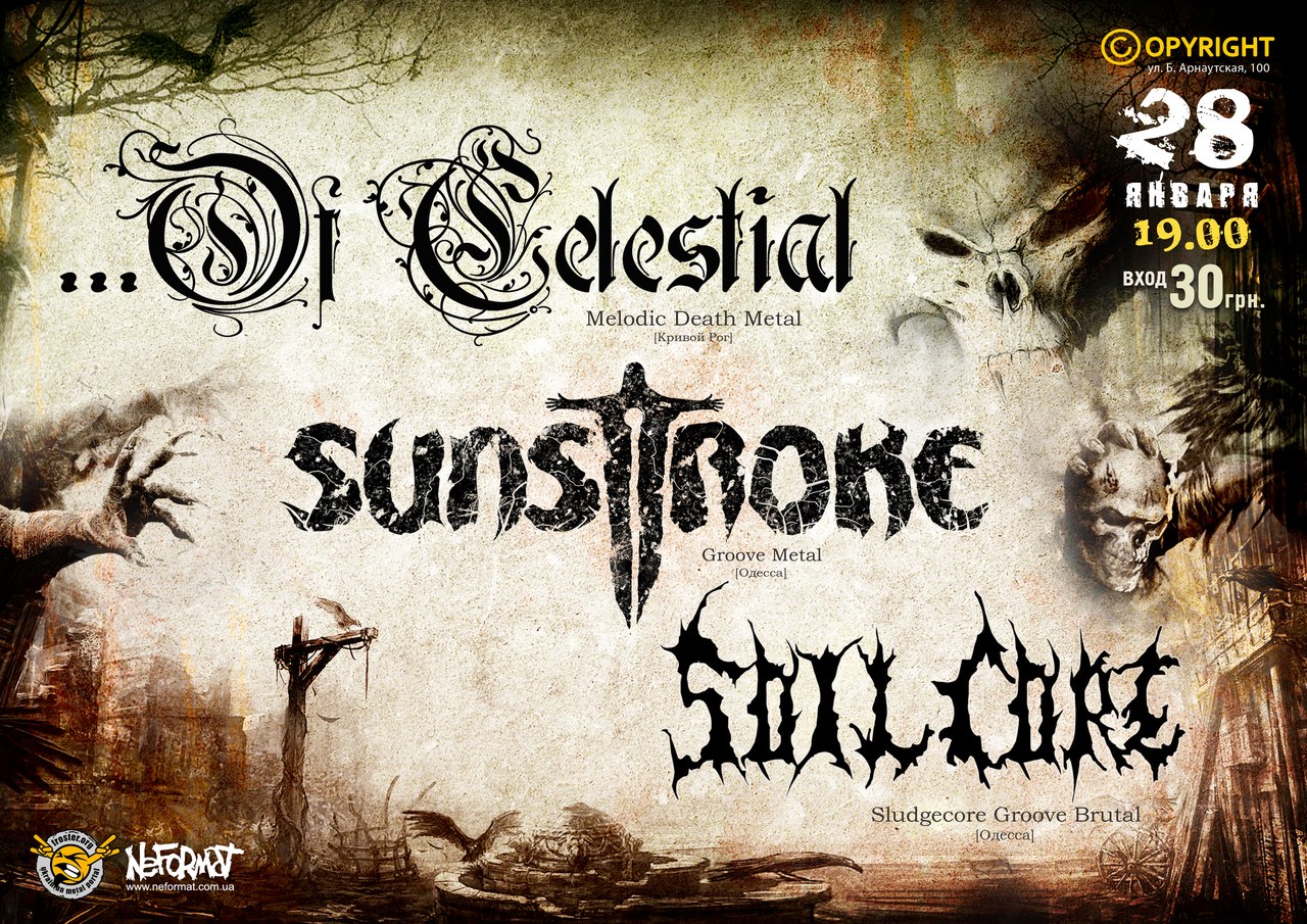 28 января: Of Celestial (melodic death metal), Sunstroke(Groove Metal),SoilCore(Brutal Core)