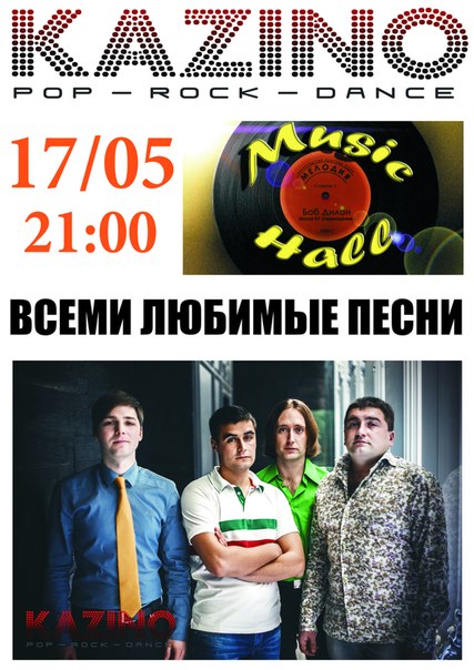 Группа KAZINO появилась на свет в 2006 году, в г. Одесса. За время существования коллектива музыканты нашли свой оригинальный подход к музыке. От рок-н-ролла, 50-х и до хитов сегодняшних дней. Всеми любимые песни и отличное настроение! При заказе 3-х бокалов пива гренки в подарок!